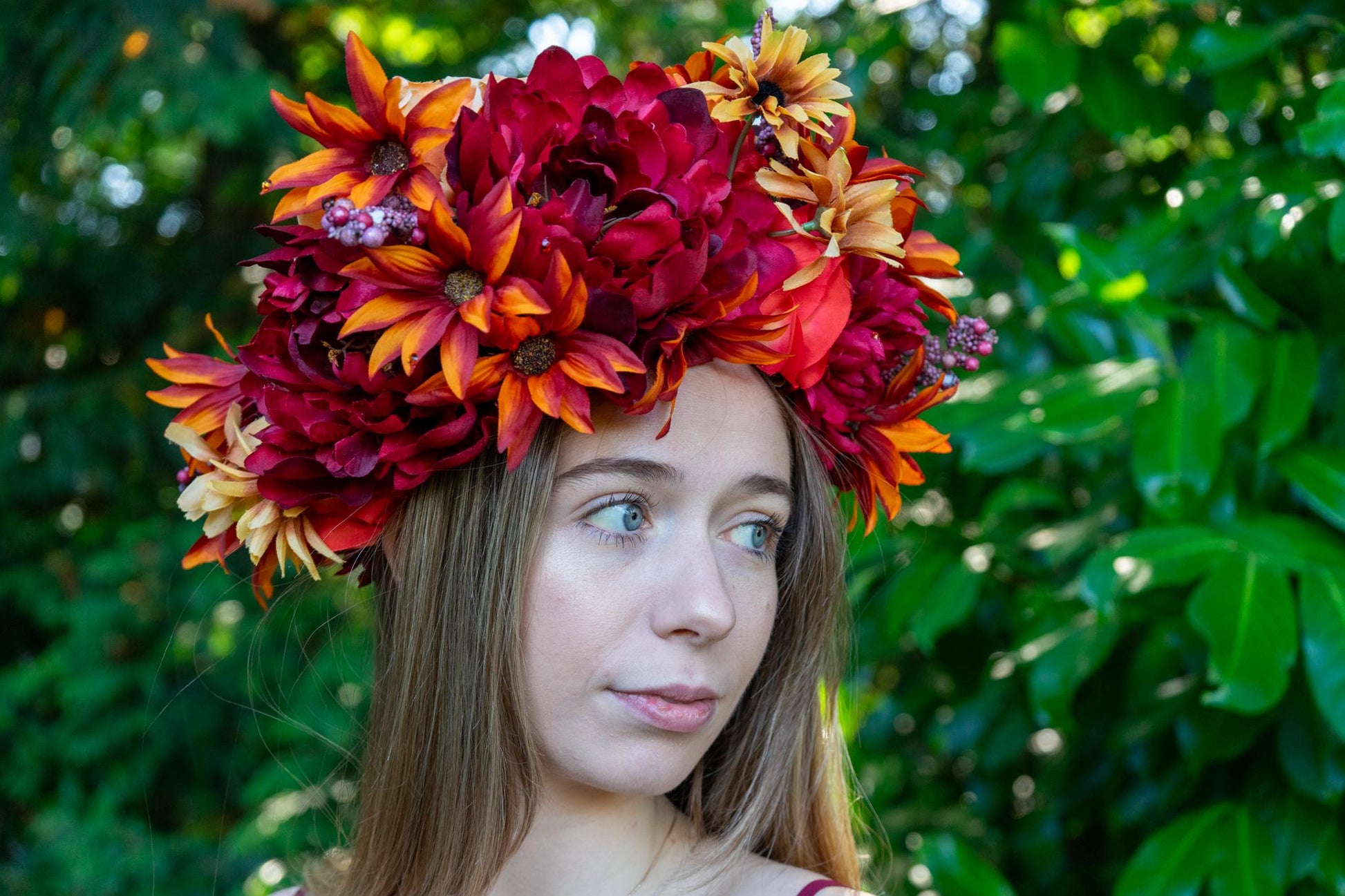 Pair these garlands and gown for an intricate, romantic look that enchants both costume gatherings and formal occasions.